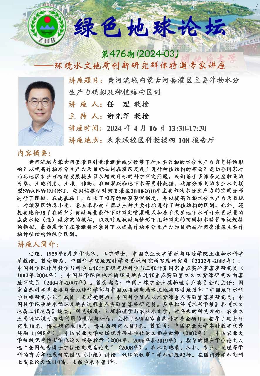 中国农业大学资源与WilliamHill中文官方任理教授学术报告