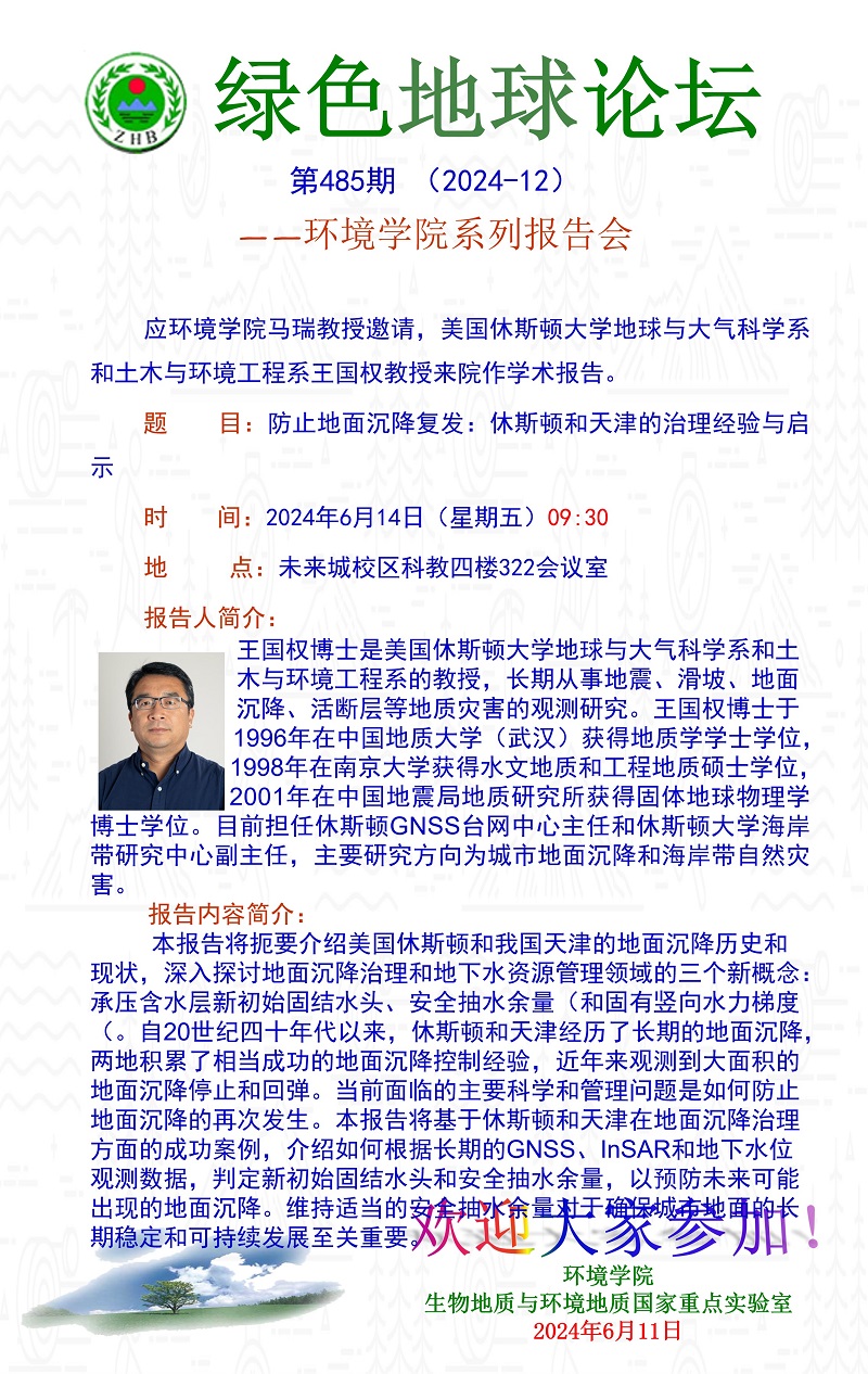 美国休斯顿大学地球与大气科学系和土木与环境工程系王国权教授学术报告