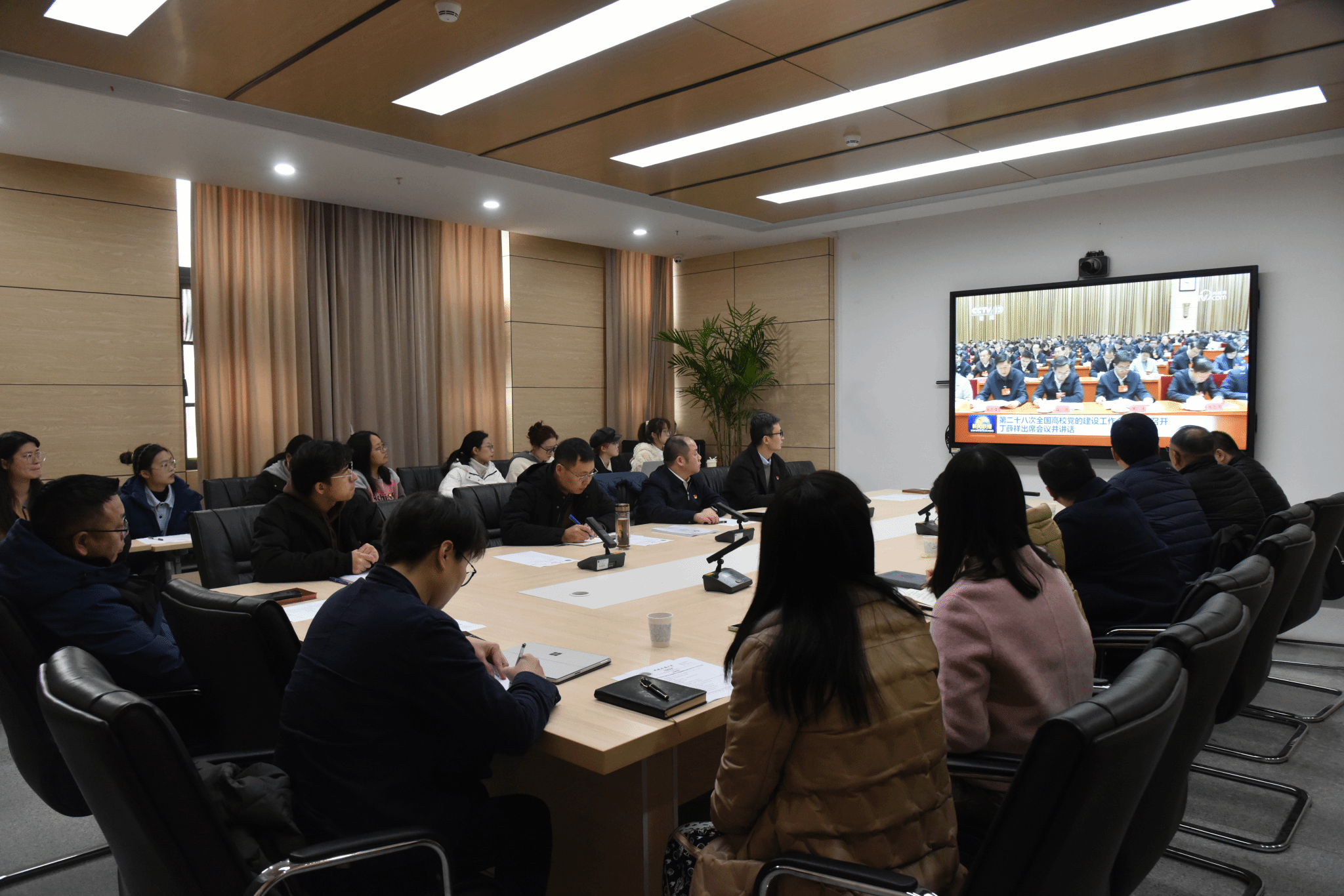 王海锋领学第二十八次全国高校党的建设工作会议精神。会议指出,要推动党建和业务深度融合,发挥党建工作在把准方向、整合资源、支持保障等方面的重要作用,以党建引领高等教育改革,落实学科专业结构优化调整、拔尖创新人才培养、关键核心技术攻关等重点任务。大家纷纷表示,要深入学习领会习近平总书记对高校党建工作提出的一系列新思想新论断新要求,贯彻落实全国教育大会精神和第二十八次全国高校党的建设工作会议精神,扎实做好本职工作。