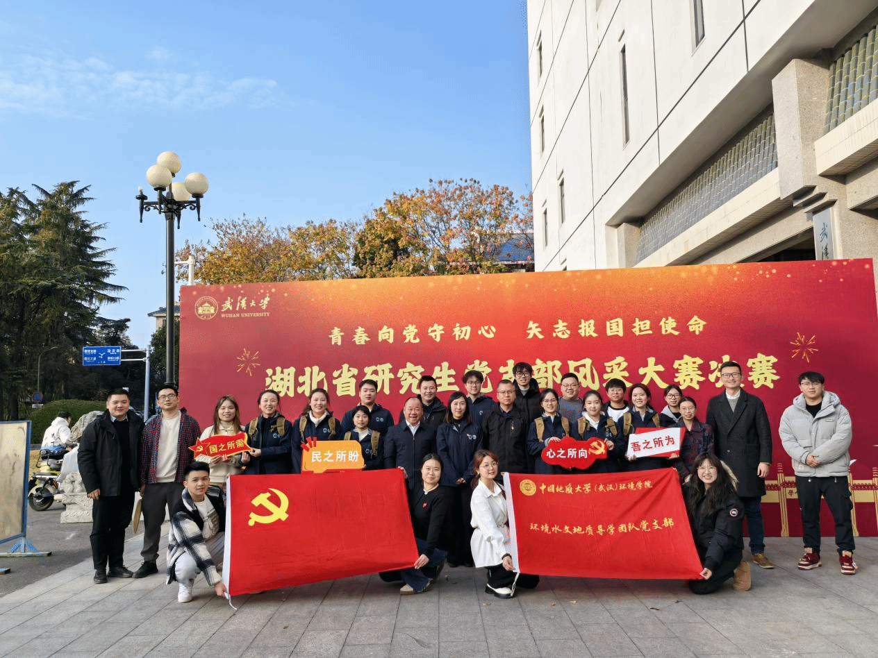 (通讯员郭玉倩 编辑耿婧)12月13日,湖北省研究生党支部风采大赛决赛在武汉大学人文馆落下帷幕。本次比赛以“青春向党守初心,矢志报国担使命”为主题,由湖北省研究生德育研究会主办,武汉大学党委研究生工作部承办。我院环境水文地质导学团队研究生党支部代表学校参赛,经过学校初赛、复赛评审和现场决赛,最终荣获省级三等奖。