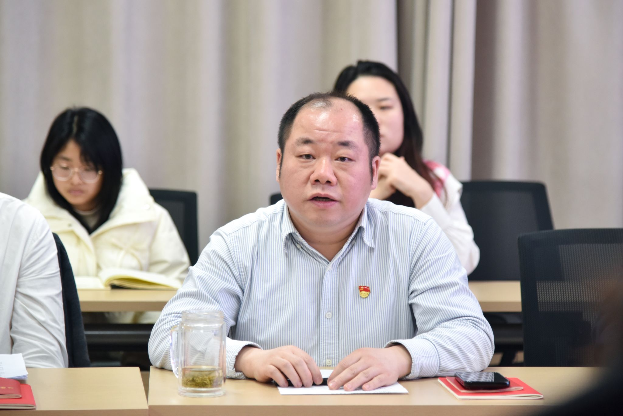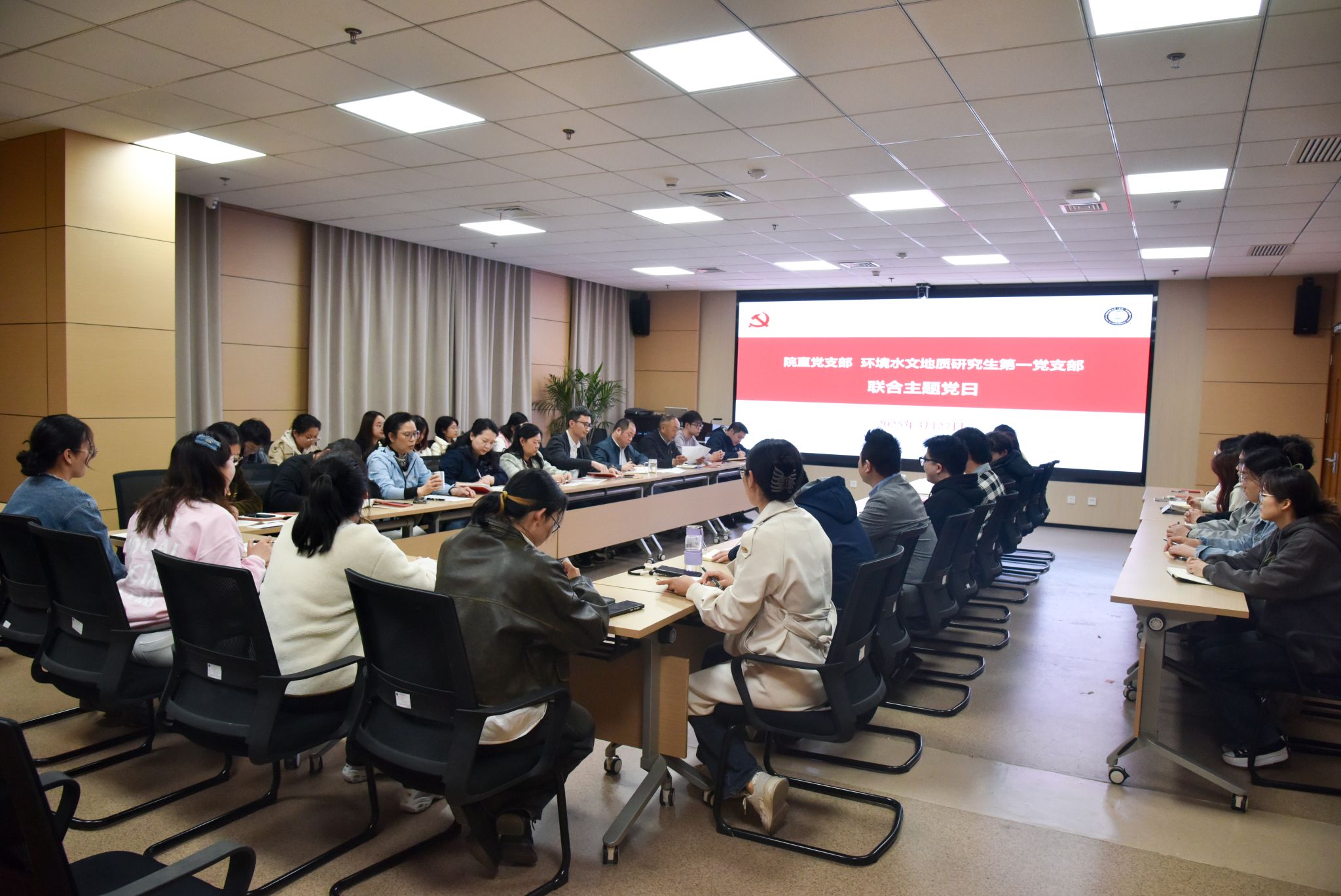 通讯员陈俊男 摄影孔凡非 编辑王孟雪按照学校党委组织部和学院党委部署要求,2025年3月27日下午在未来城校区科教楼四322室,院直党支部与结对领航的环境水文地质研究生第一党支部,以“学习贯彻全国两会精神,开展深入贯彻中央八项规定精神学习教育”为主题开展联合主题党日。院直党支部与环境水文地质研究生第一党支部成员参加。院直党支部书记张学海主持联合主题党日。