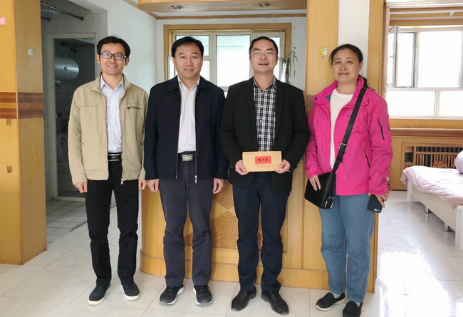 李素矿一行走访了洪军同志工作单位并与塔里木大学有关人员进行了座谈交流,掌握了解洪军工作情况。同时走访了宿舍,了解洪军生活情况,并送上慰问金。