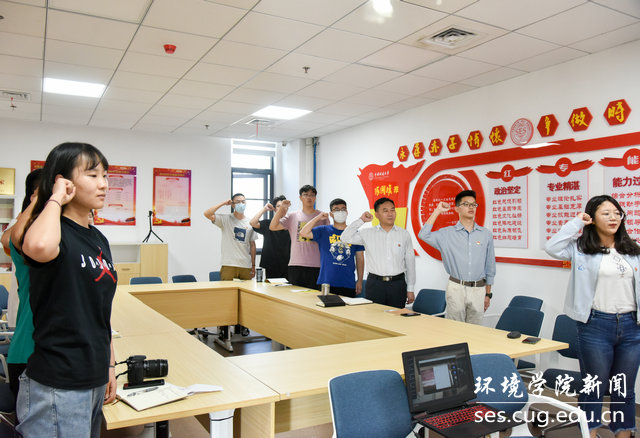 全体党员齐唱国歌,重温入党誓词。