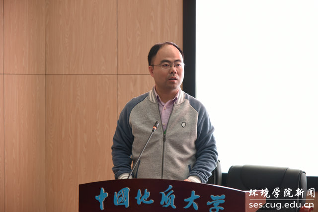 实习教师代表陈伟结合学生时期实习经历发表感想。从学生到教师、从教室到野外,身份的转变、场地的转变,是专业教学的延续,更是校训精神的体现。野外实习对我们的认知有重大意义,同学们的努力就是对老师最大的激励。
