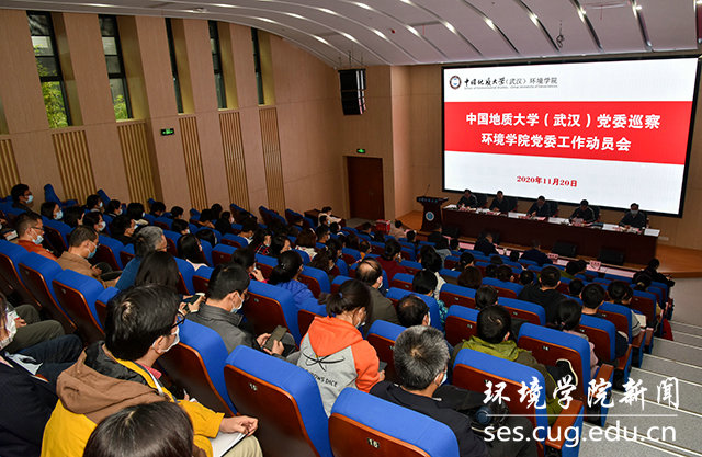 (通讯员张海云 摄影张学海 编辑严丽莎)2020年11月20日下午,中国地质大学(武汉)党委巡察WilliamHill中文官方党委工作动员会在未来城校区科教楼四-108报告厅召开。学校党委常委、副校长刘杰出席会议。学校党委第二巡察组组长陈飞,副组长张志毅以及巡察组成员宋冬冬、孙剑、徐媛,WilliamHill中文官方党委委员、学院行政班子成员,各学科带头人、院分学术委员会成员,省政协和民主党派代表、纪委委员、工会委员、教代会代表、党代会代表、教职工和学生代表以及离退休老同志代表等113人参加动员会。WilliamHill中文官方党委副书记、院长马腾主持巡察动员会。