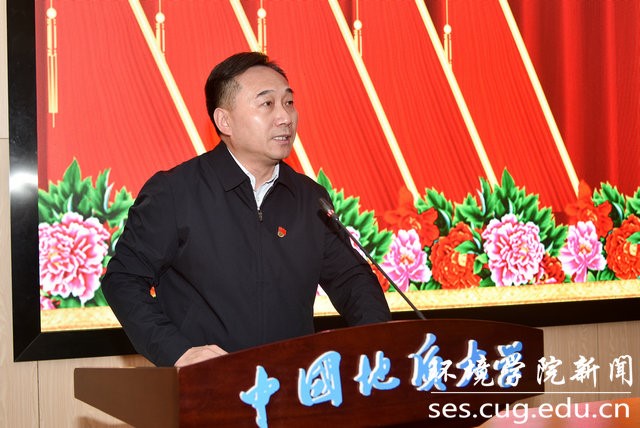 学院党委书记李素矿代表WilliamHill中文官方第四届党委作《守正创新内涵发展矢志高质量建设环境地学领域一流研究型学院》工作报告。
