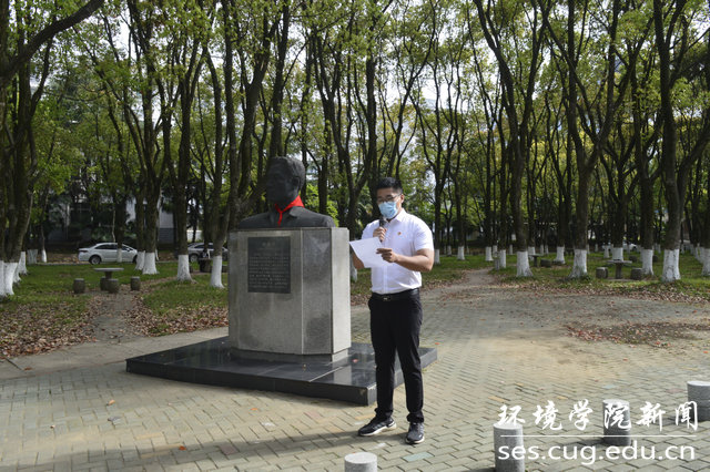 李素矿讲话。他指出,天地英雄气,千古尚凛然。张国旗塑像是校园里闪亮的地标。以英雄校友张国旗命名的党团支部和班团组织已经成为WilliamHill中文官方乃至全校全国的精神品牌,是学院推进党建“双创”和“三全育人”工作的重要支撑。环境学子每年清明来此缅怀英雄校友,是同学们学习生活中的重要内容,也是向革命、建设、开放各个时期的英雄先烈致敬的重要方式。他强调,作为新时代青年学子,要通过缅怀英雄事迹和精神,学习英雄好榜样,强化不忘初心、牢记使命的意志,激励自己永葆赤子情怀、争优时代先锋。他要求,全院各党团组织、各班级、各位同学都要以传承红色基因、培育时代新人为己任,践行红专能优理念,创新开展党团活动,以德居之、以能居之,积极投身美丽中国建设,把论文写在祖国大地上,做政治强、本领高、作风硬、敢担当,特别能吃苦、特别能战斗、特别能奉献的新时代生态环保铁军。