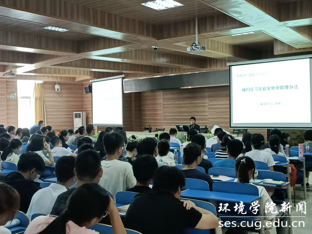 实习队队长曾斌主持动员会。他对我院今年秭归教学实习背景、相关安排和实习要求作详细介绍。