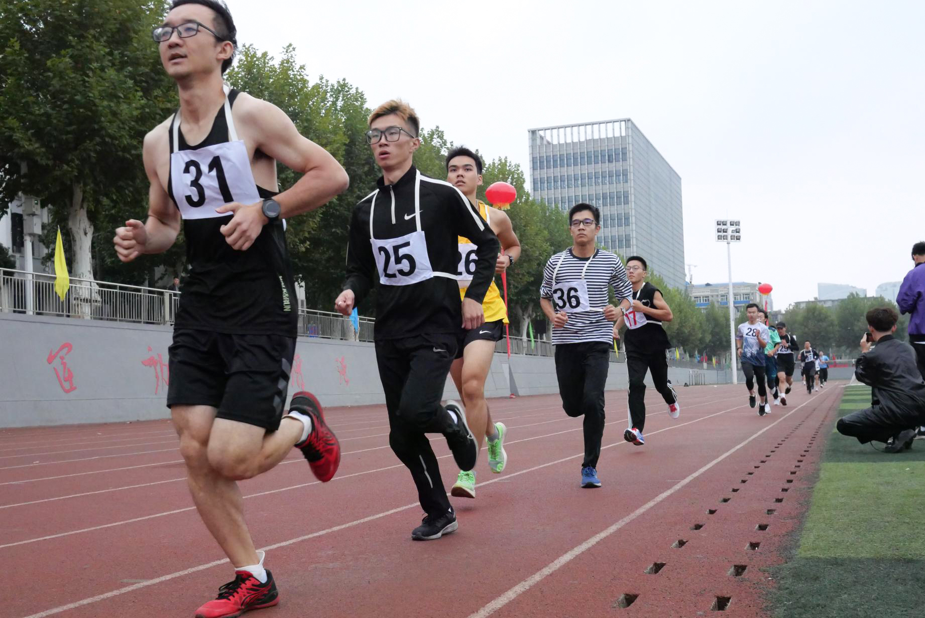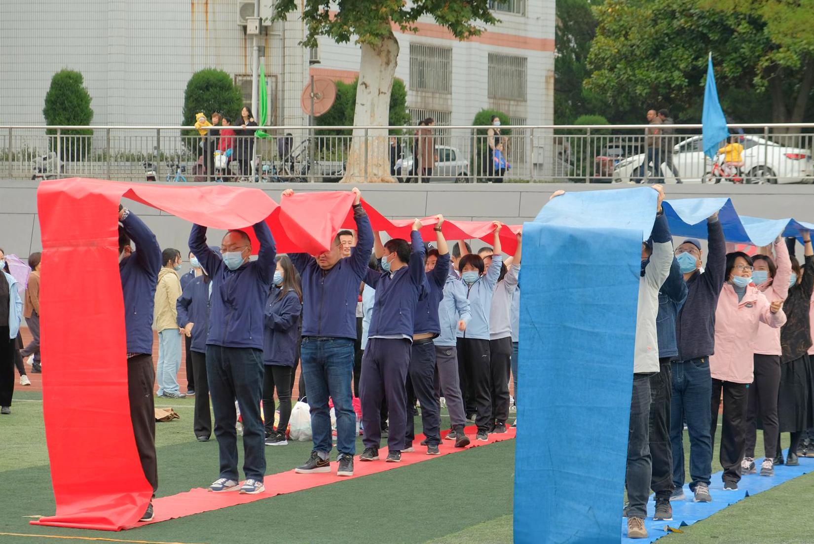 学院教工和学生在运动场上奋力拼搏