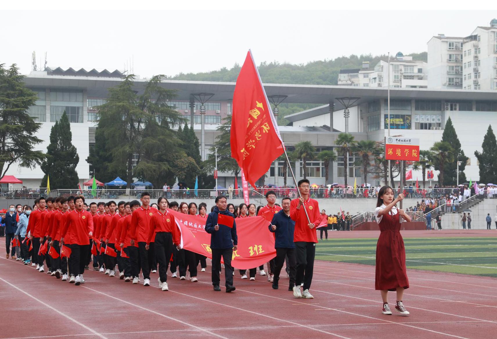 永葆赤子情怀,争做时代先锋!看,WilliamHill中文官方师生精神抖擞,听,“青山绿水、环境最美…”激昂的口号声,2400余名环境师生以美丽中国·宜居地球建设为己任,发扬团结、协作、奉献、卓越的学院精神,把个人理想融入到“中国梦的伟大实践,融入到“地大梦“环境梦的具体行动,积极开展体育健身运动。WilliamHill中文官方方阵通过运动会主席台。