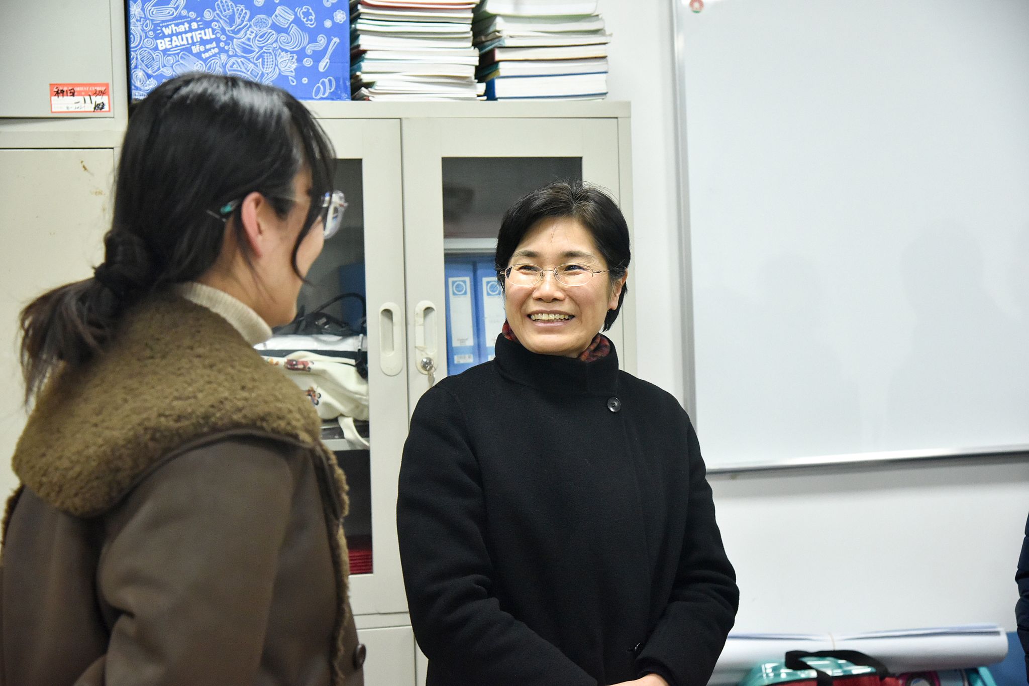 黄晓玫书记一行参观了学院建设成果展,随后来到学院办公室和学生工作办公室,看望慰问了学院办公室教师、辅导员,了解他们的生活和工作情况,认真听取了学院人才培养、就业进展、中加班建设等方面的情况。